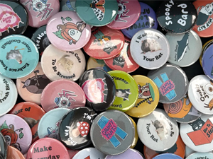 Visit the Children’s Museum of New Hampshire today during the afternoon play session, 1–4pm, and meet one of our Gallery 6 artists, Haley Searcy at 2:30pm. Haley will help you bring your favorite color to life with a fun “Make Your Own Pin” activity. Kids can decorate a pre-cut circle with their favorite color using markers, crayons, or stickers, and Haley will help you turn it into a colorful take-home creation. The fun is included with museum admission and free for Members. Haley’s work is currently on view in the museum’s Gallery 6 “Stroll the Rainbow” art exhibition.
